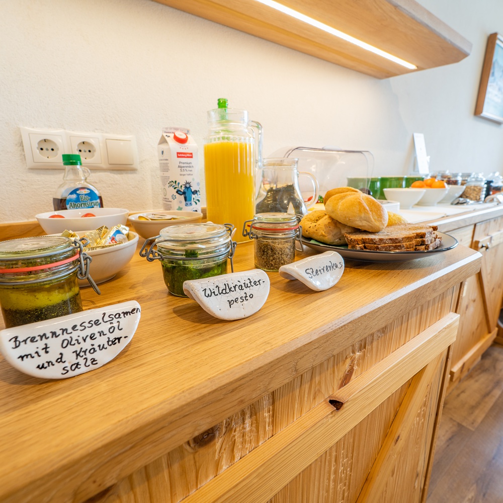 Genießen Sie Ihre Urlaubszeit bei einem leckeren Frühstück oder einem phantasievoll zubereitetem Essen, mit hausgemachte Gustostückerl sowie Naturschätze aus unserem Bauerngarten!